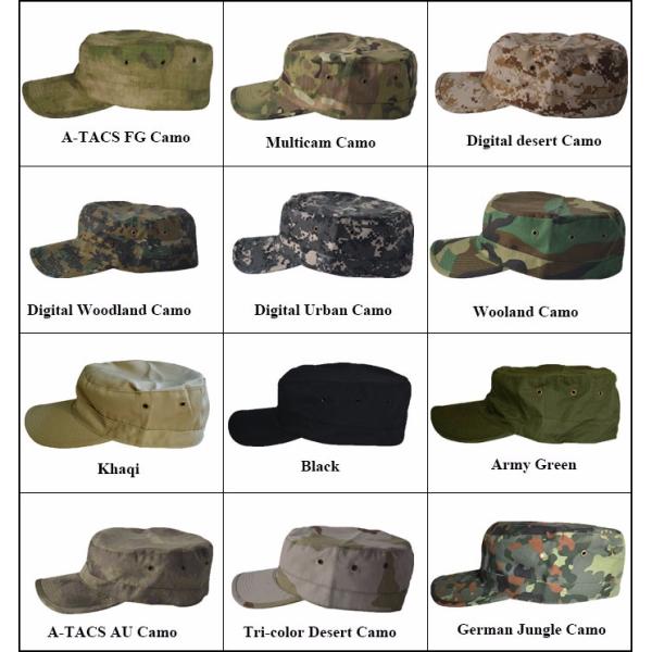 Curved Peak Military Flat Top Army Cap Big Stitches / Sandwich Solid Color Available Images |